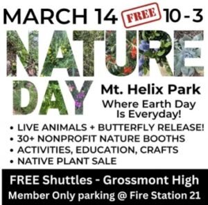 East County News Service March 6, 2026 (Mt. Helix) – You’re invited to celebrate Nature Day at the Mt. Helix Park, where Earth Day is…