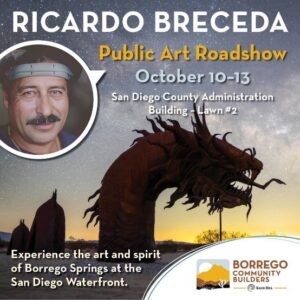 Printer-friendly versionEast County News Service Oct. 10, 2025 (San Diego) — The heartbeat of the Borrego Springs art scene is coming to downtown San Diego this weekend. Metal sculptor Ricardo Breceda‘s Public Art Roadshow will be on the San Diego County Administration’s Lawn No. 2 from Friday, Oct. 10 through Monday, Oct. 13. Presented by Borrego Community Builders, a Rams
