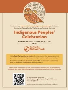 Printer-friendly versionEast County News Service October 10, 2025 (San Diego) – The annual Indigenous Peoples’ Celebration, organized by the San Pasqual Band of the Kumeyaay Nation and San Diego Zoo Wildlife Alliance, will take place at the San Diego Zoo Safari Park on October 13, 2025 from 10 a.m. to 5 p.m. The event celebrates Indigenous communities, their cultures, and their commitments to wildlife. The event is open to