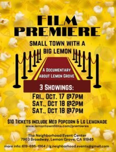 Printer-friendly versionEast County News Service October 16, 2025 (Lemon Grove) – Lemon Town Films proudly presents the hometown premiere of Welcome Home to Lemon Grove, California, a new documentary by local filmmaker Michael Fanter. The film celebrates the community’s history, landmarks, and the people who have shaped “The Town with the Giant Lemon.” The event will take place at The