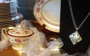 with such antique items as furniture, glassware, antique china sets, hand-made