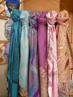 Sarah personally hand picks all women’s wear, such as the large array of elegant drape scarves with bursting colors and animal prints that add flare to a