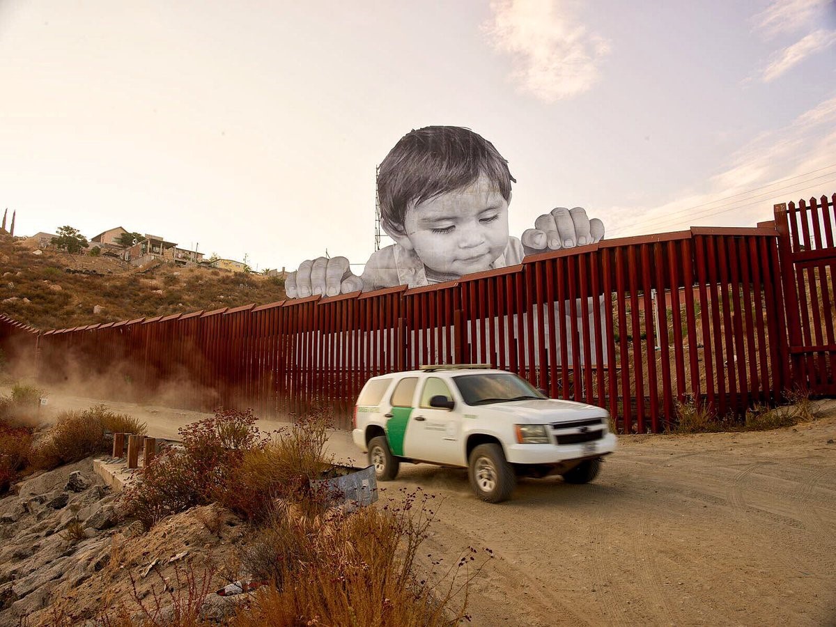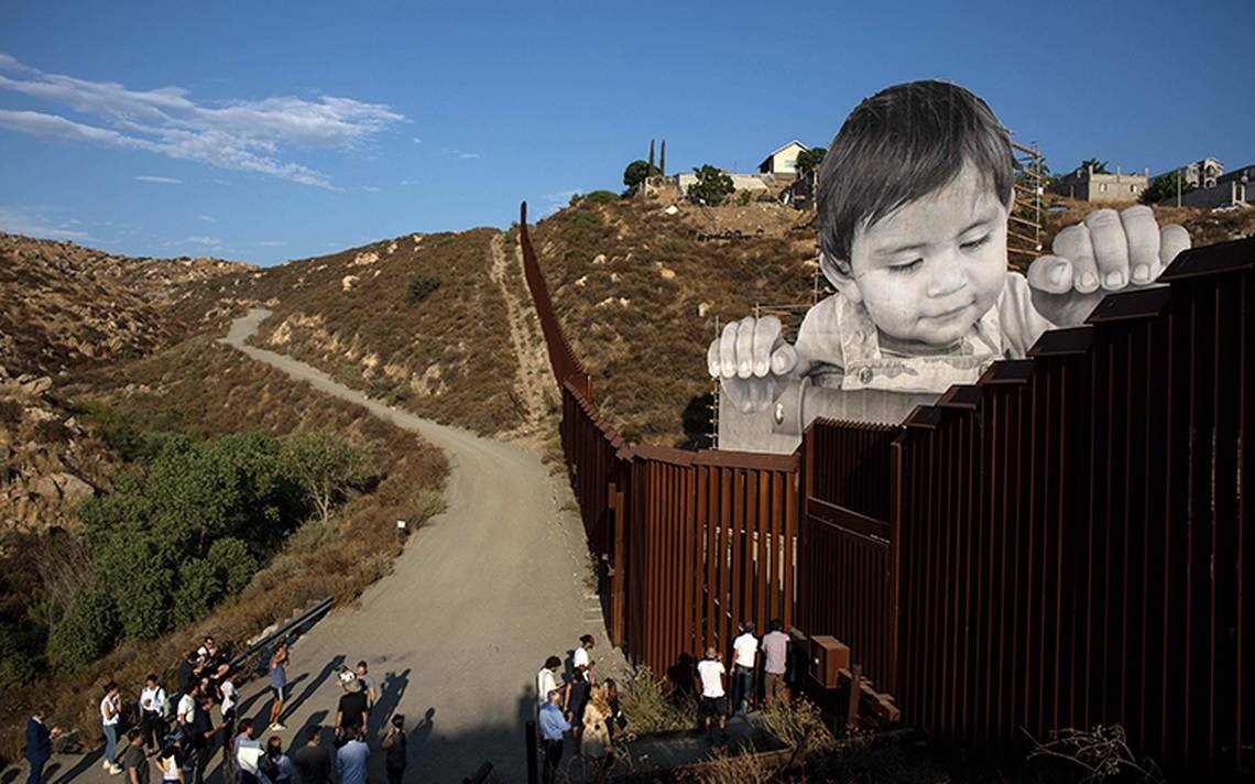 Drawing attention to the plight of innocent children denied entry to, or facing expulsion from the U.S. under President Donald Trump’s tough policies, JR erected a 70-foot-tall mural titled Kikito. It depicts a one-year-old boy peeking over the border fence in Tecate, visible from the U.S. side of the border in San Diego’s East County.