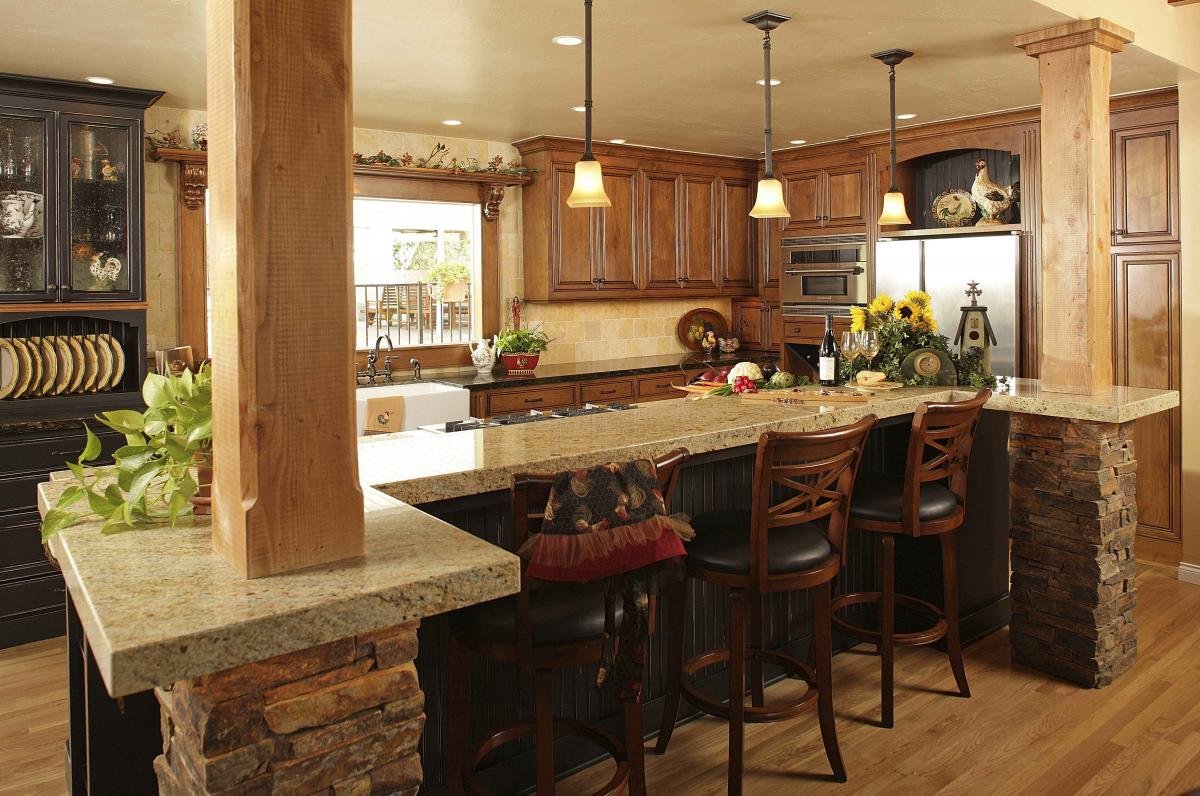 Green design specialist Morgan Lloyd, Allied Member ASID, designed a Rancho Bernardo kitchen with curvilinear lines and organic materials to create a warm and spirited space. Highlights include a river rock and slate backsplash that is reminiscent of a winding river and a curving slate and wood floor.