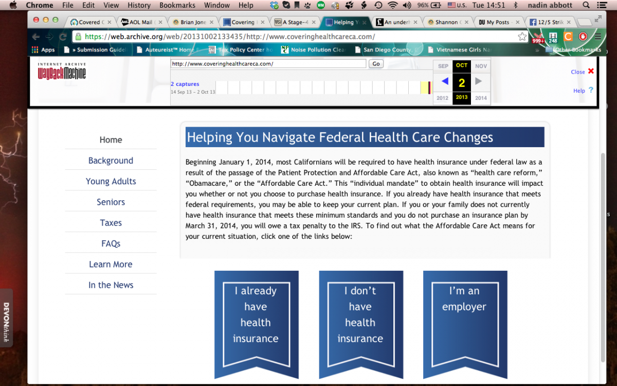 http://sanfrancisco.cbslocal.com/2013/11/14/attorney-general-shuts-down-fake-covered-california-websites/; http://thehill.com/blogs/hillicon-valley/technology/190297-california-shuts-down-obamacare-site-imitators
