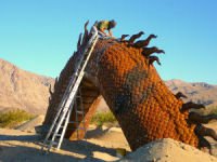 The most dramatic of all is a giant 350-foot long serpent that appears to dive under Borrego Springs Road. It has a tail of a rattlesnake and a head of a Chinese dragon. It is by far the most detailed work created by Breceda found at Galleta Meadows.