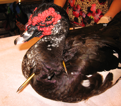 October 14, 2009 (San Diego’s East County)– Animal Control Officers rescued a Muscovy duck that had been shot five times with a crossbow this morning at Chollas Lake in East San Diego, near Highway 94.