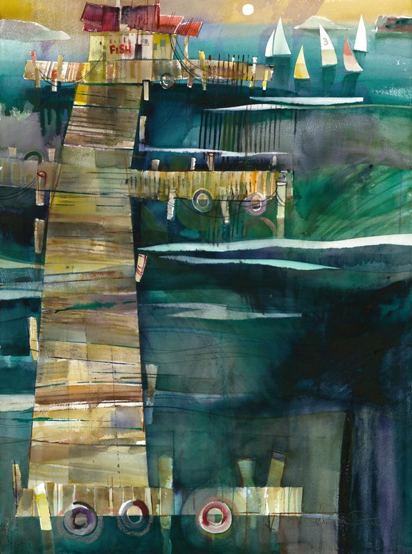 A watercolor painted as a demonstration for his class in Kensington depicts a traditional New England fishing village interpreted through the artist’st trademark "happy color" voice. The work, Cantos Cove New England, won third place in the Robert Landry Cash Award Show. It will also be exhibited in the San Diego Watercolor Society International Exhibition this coming October, earning Signature Status for the artist in his third acceptance to the juried show.