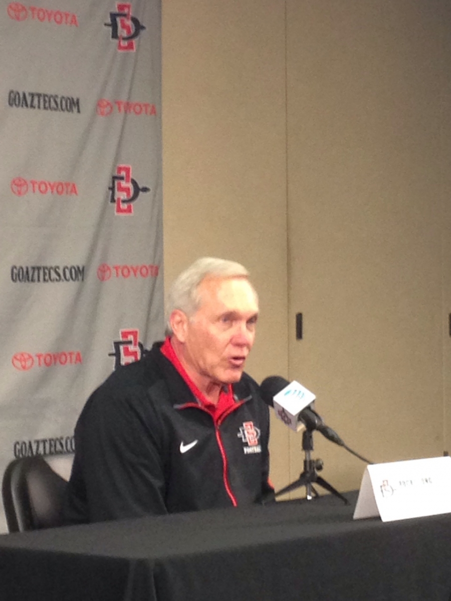 A problem on any basketball team is foul trouble and SDSU had a lot of that last night. Fisher was asked how to avoid it. “We need everybody to come out of the game because I want to take them out, and not because we feel like we need to protect them and hold them because they have two early fouls or three or four fouls…. Zylan is our best screener. He’s our best screener, so he has to screen and not get called for an illegal screen like he did last night. So we’ve got to eliminate some of those kinds of plays, but yeah we need to have him ready to go, and me take him out when I think he needs a break and when I want to take him out. He’s got to stay out of foul trouble.”