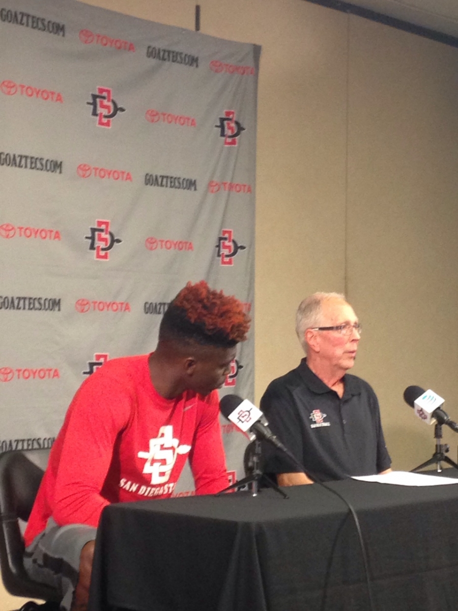 November 8, 2016 (San Diego) – Election Day saw a plethora of San Diego State coaches and athletes at this week’s press conference. Aztecs men’s basketball coach Steve Fisher and sophomore forward Zylan Cheatham, football head coach Rocky Long, women’s basketball coach Stacie Terry, junior defensive end Sergio Phillips and junior tight end David Wells took the mic this week.
