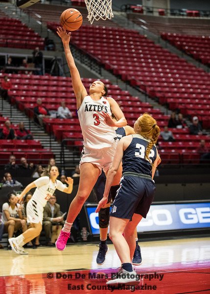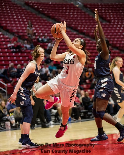 Freshman Sophia Ramos paced the Aztecs with 15 points on 7-for-10 shooting. Téa Adams had 11 points, Najé Murray had 10 and Mallory Adams had nine points and ten rebounds.