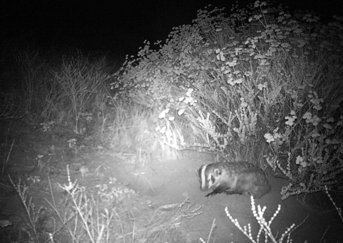 In June of this year, a new set of burrows was found, and again a wildlife camera was set in place. After about a month, the memory card was retrieved, and Quigley-Raymond went through the laborious task of reviewing the 5,000 or so images. With a shutter that fires when activated by a motion sensor, a windy day on a grassy meadow can mean hundreds of photos of not much more than a hole in the ground. But in one of those shots, the corner of the frame contained what looked suspiciously, but not conclusively, like a badger. The next month was a similar story. Three images taken in very low light showed something moving toward the burrow, but again, a badger could not be confirmed.