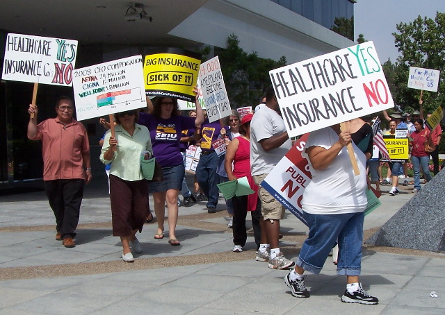 Organizers of the six actions statewide are members of California Health Care for America Now. They were joined in San Diego by other organizations including Health Access, MoveOn, the California Labor Federation and the Service Employees International Union. The California Health Care for America Now coalition claims to represent over 1100 organizations with 30 million people dedicated to winning quality, affordable health care that can be counted on.