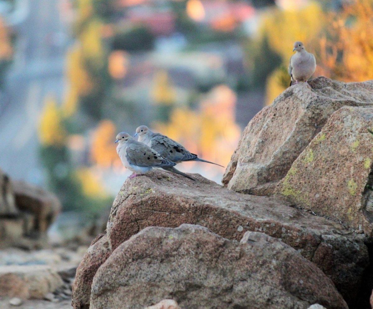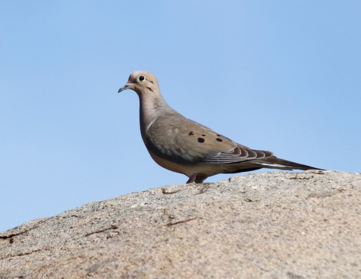 We have five species of Doves in San Diego County. Hardly ever seen except in our deserts is the White-Winged Dove; more commonly seen are the Eurasian Collard Dove and Spotted Dove. The smallest of the family is the Common Ground-Dove. But the most common dove in our area is the Mourning Dove. It is one of the most abundant and widespread of all North American birds. The number of individual Mourning Doves is estimated to be approximately 475 million.