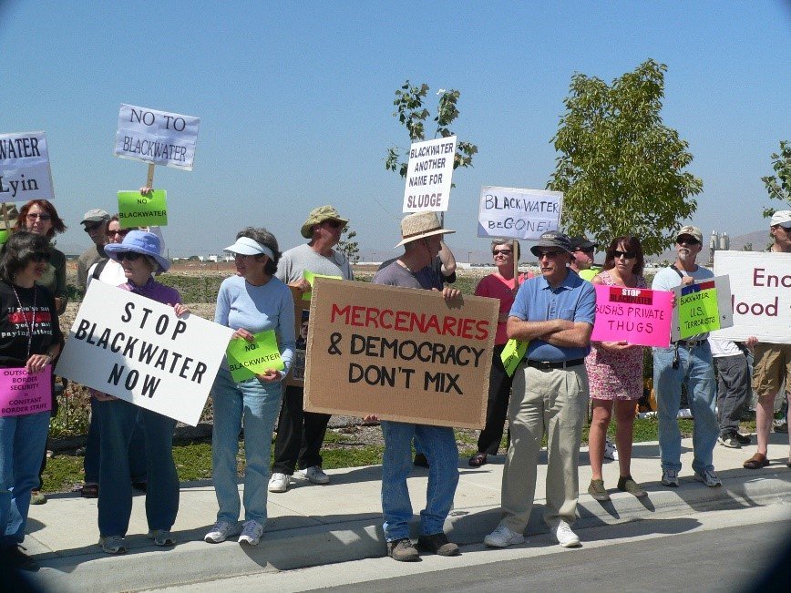 Photo, right: Potrero residents protested against Blackwater in June 2008