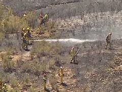July 19, 2011 (San Diego) – A car fire spread into brush alongside State Route 52 near mast Boulevard this afternoon on the northern edge of Mission Trails Regional Park.