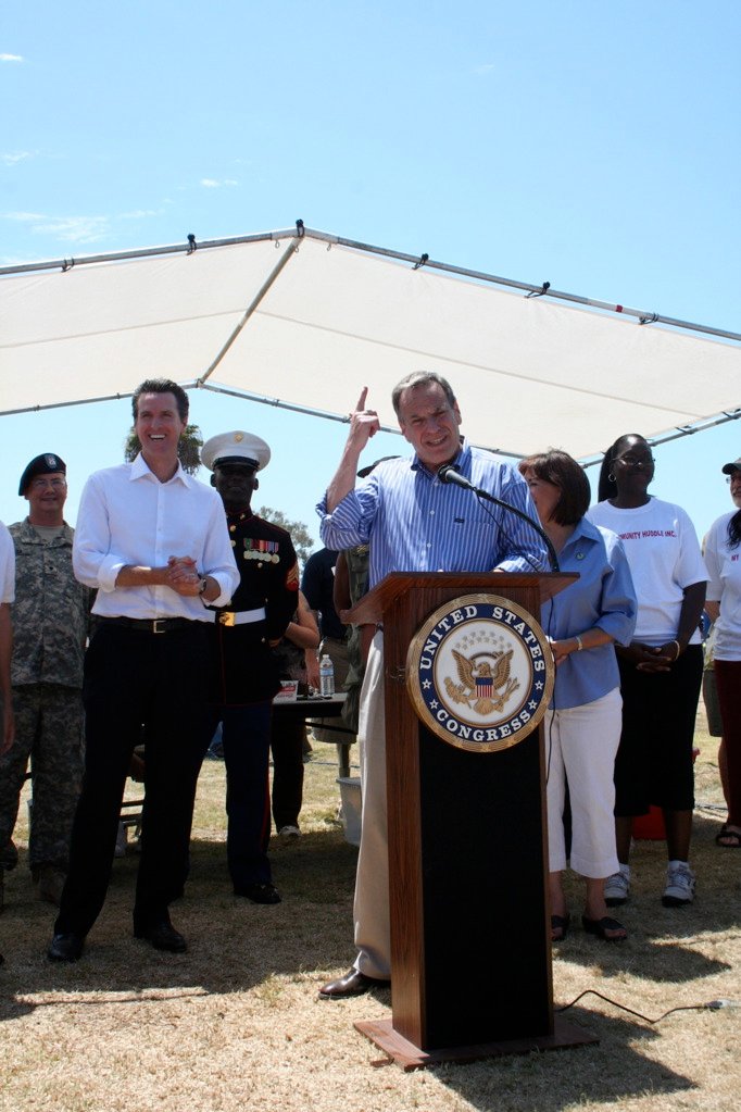 Photo, right: Filner at Stand-Down event to help homeless veterans in San Diego, along with Governor Gavin Newsom