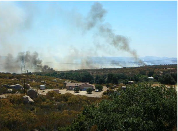 Tisdale said she went down to the border when the fire began, arriving before firefighters. "It started immediately east of Jardinas del Rincon, a residential area in Mexico in the municipality of Tecate," she said. Due to thick, black smoke from burning oaks and creosote, Tisdale added that she could not tell if structures in Mexico had burned.