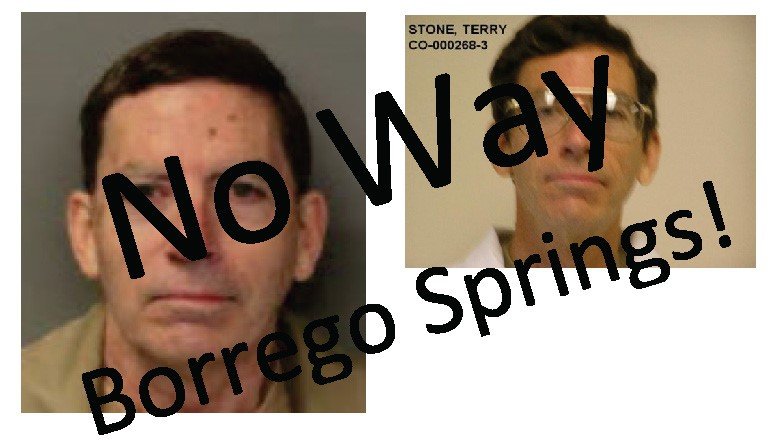 April 7, 2014 (Borrego Springs)–Borrego Springs residents are holding a rally tonight night to oppose the release of a violent sexual predator into their community. The California Department of State hospitals proposes to place Terry Stone at 2632 Frying Pan Road in Borrego Springs.