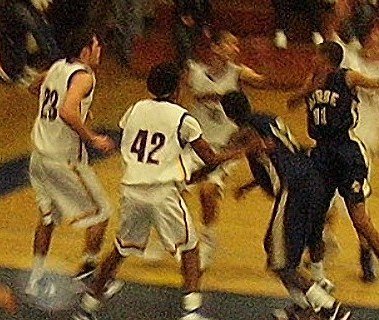If Holloway’s jumper provided the icing in the fourth quarter, then Jeff Bradley’s performance provided the cake. He scored ten points in the final period, including two three-point jumpers. One came from well beyond NBA range and came just inches short of becoming a violation. After the shot initially bounced off the rim, it went almost straight up, and rested for a split second on the top of the backboard before rolling off and falling in the basket.