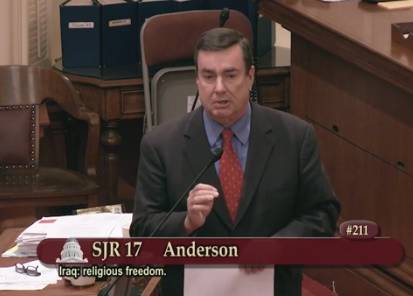 View a video by Senator Anderson presenting SJR 17: http://district36.cssrc.us/content/senator-anderson-presents-sjr-17-order-protect-those-under-attack-iraq Anderson detailed horrors perpetrated by ISIS terrorists including burying people alive and killing those who refuse to convert to Islam.