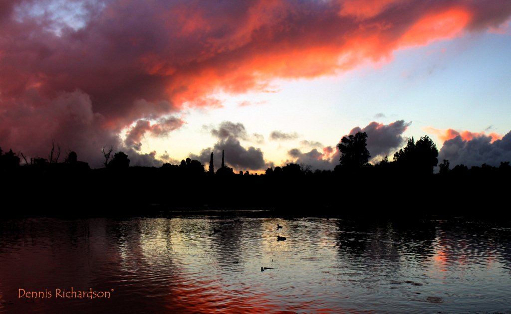 This dramatic image of waning storm clouds reflected in Lindo Lake at sunset was captured on film by Dennis Richardson.
