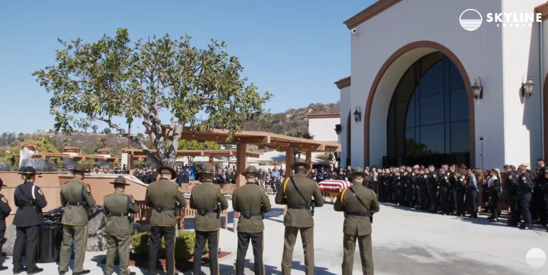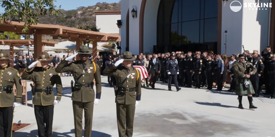 Photos from La Mesa Police Officer Lauren Craven’s funeral via screenshot from Skyline Church video