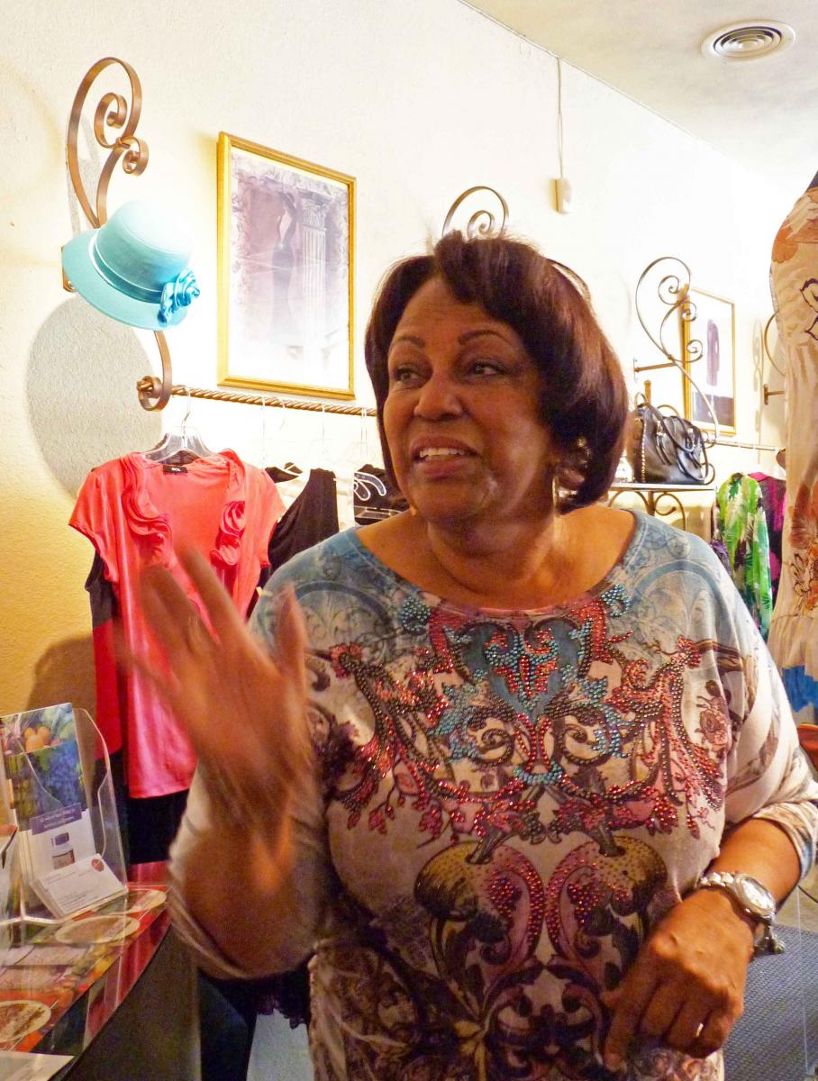 Owner Peggy Harris was overcome with emotion, brushing away tears of joy as the horde of shoppers burst through the front doors and swiftly began trying on the trendy, stylish and often glitzy garb that gives Glamour Girlz its name.