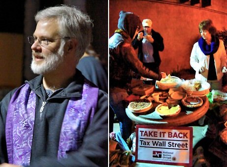 Clergy members brought pies to protesters at the Civic Center “to give thanks for all those lifting up the issues of fairness, compassion and equality being shared by this movement,” Rev. David Miller observed.