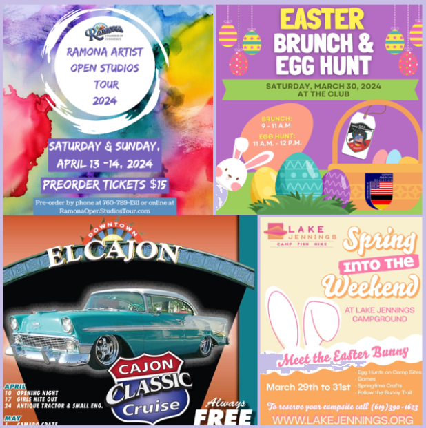 Printer-friendly version By Miriam Raftery April 7, 2024 (San Diego’s East County) — Late April brings some awesome events to East County, including Daffodil Days in