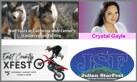 Printer-friendly versionJuly 31, 2023 (San Diego’s East County) — August and September events coming up in San Diego’s East County will give you plenty to howl about – including tours
