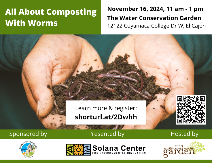 October 9, 2024 (San Diego) — The County of San Diego is offering free webinars in November to help live and grow sustainably, in partnership with Solana Center and the Water Conservation Garden.