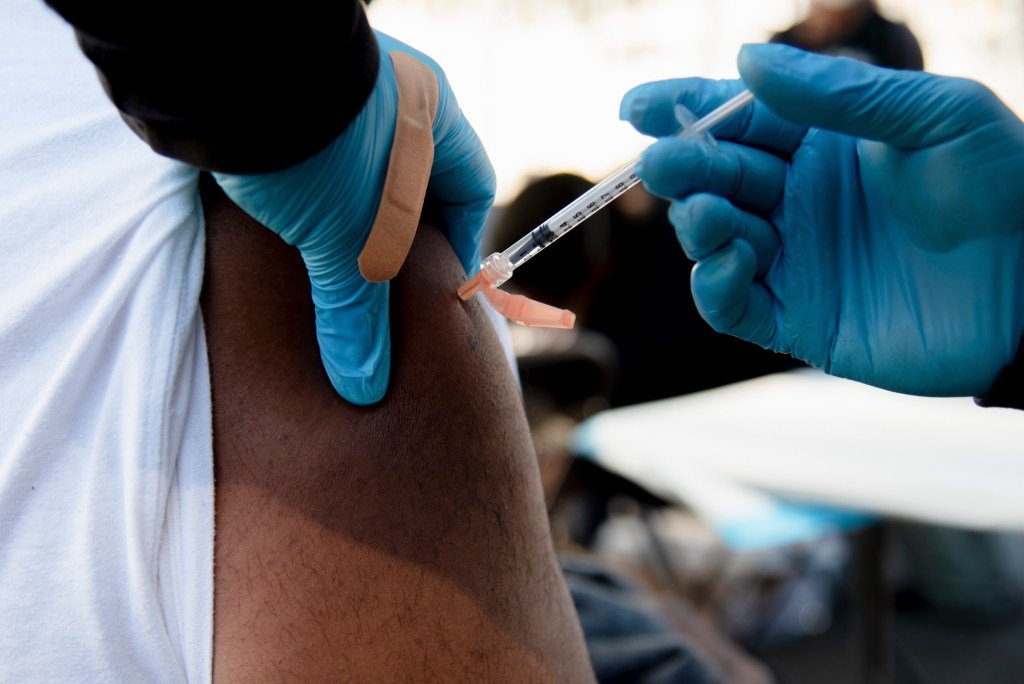 February 25, 2022 (San Diego) – Deondray Moore sat in a plastic folding chair, rolled up his sleeve and got his first COVID-19 shot in the parking lot of Center of Hope Community Church in Oakland a week ago. He was the last in his family to get vaccinated after putting it off for more than a year, and only acquiesced because he wants to be in the delivery room when his son is born this summer.
