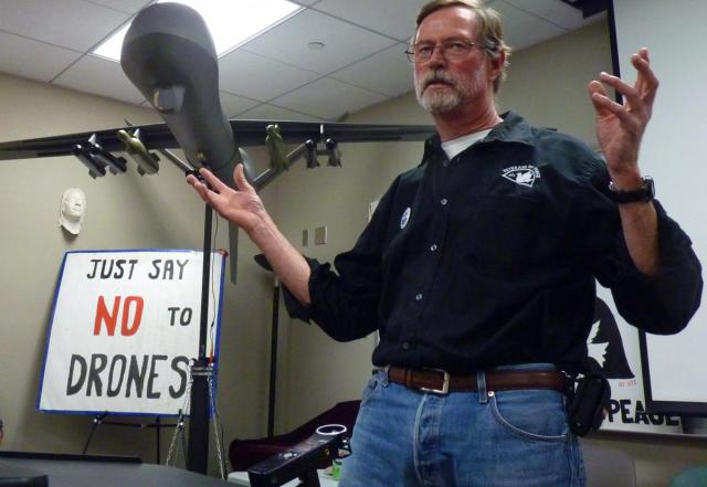 Dave Patterson, a Ramona resident with Veterans for Peace, said his group got involved over concerns over “alarm reports” that the majority of those killed overseas by drones were civilians, including many children. He is also concerned about drones being deployed on the international border.