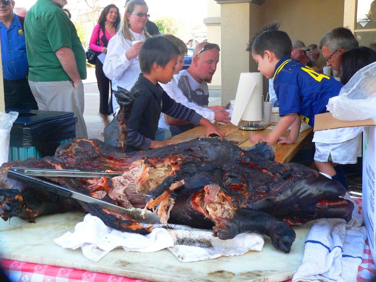 January 31, 2010 (Santee) – The owner of Smokin’ Joes Barbecue in Santee made a whole-hog effort to please guests at the grand opening of his new restaurant yesterday. After slow-roasting a whole pig on a spit, Joe Jones and his restaurant crew served up succulent results to a hungry crowd lined up for “pig pull” samples.