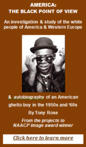 Printer-friendly version   America: The Black Point Of View, An Investigation And Study Of The White People Of America And Western Europe, and The Autobiography Of An American Ghetto Boy, The 1950s And 1960s, by Tony Rose (Amber Books, 2015, Phoenix, Arizona, 545 pages). Book Review by Dennis Moore November 28, 2015 (San Diego’s East County) – The title itself