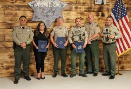 (Photo left to right: Assistant Sheriff Ricardo Lopez, Sheriff’s Dispatcher Shiloh Corbet, Deputy Cody Green, Deputy Michael Moser, Commander John Boyce and Captain Aldo Hernandez)The San Diego County Sheriff’s Office thanks Sheriff’s Dispatcher Shiloh Corbet, Deputies Cody Green and Michael Moser, as well as the Santee Sheriff’s Station, Lakeside Sheriff’s Substation, Sheriff’s ASTREA, Sheriff’s Communications Center and several Good Samaritans for working together to find the missing child and getting him to safety.