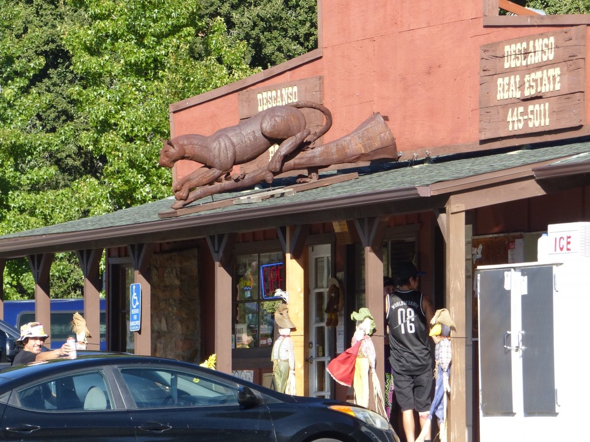 Photo, right: Perpendicular parking in front of a trading post and real estate office across the street from Descanso Junction.