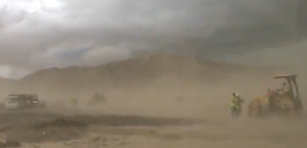 Printer-friendly version Did researchers miss a key cause: scraping desert soils for renewable energy projects? By Miriam Raftery Photo by Jim Pelley: Dust from construction at Ocotillo Wind Energy