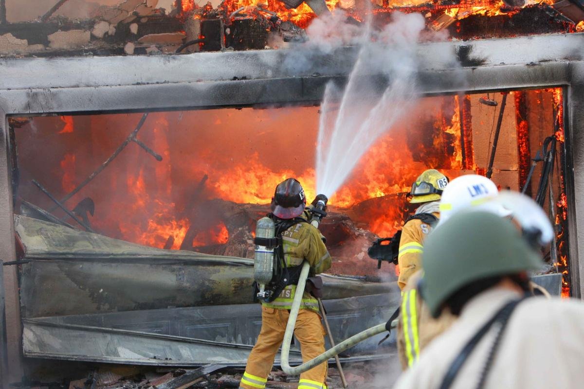Firefighters were forced to stand back while Sheriff’s deputies armed with rifles cordoned off the neighborhood, listening to what sounded like ammunition exploding inside the home. Realizing the house was a total loss, firefighters focused on saving neighboring homes, one of which was damaged by the blaze.