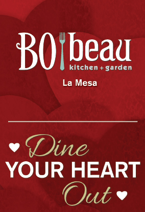 February 5, 2015 (La Mesa) — Love is in the air at Bo-Beau’s Restaurant in La Mesa, East County’s only member of the esteemed Cohn Restaurants.  Chef Neil has put together a three-course menu with a shared dessert to showcase his cuisine on Valentine’s Day for $49.95 per person.
