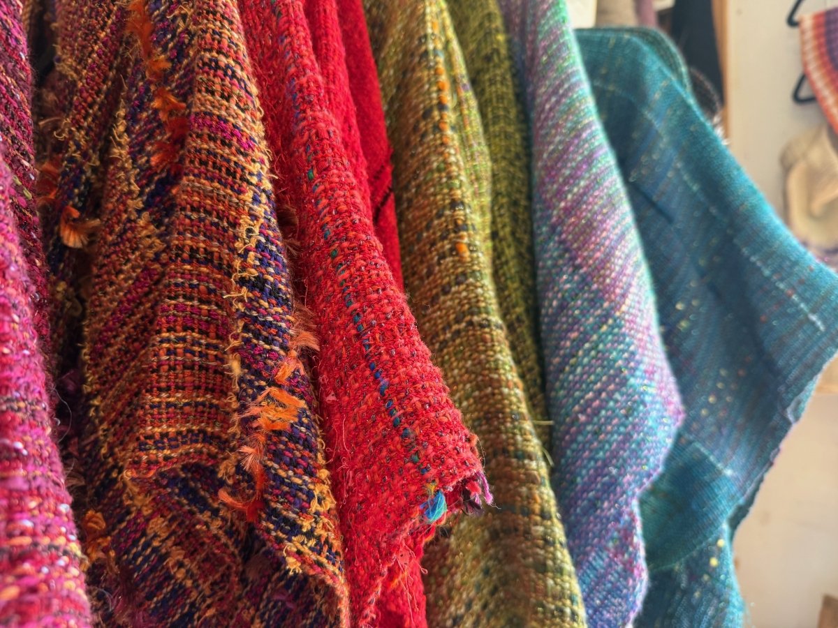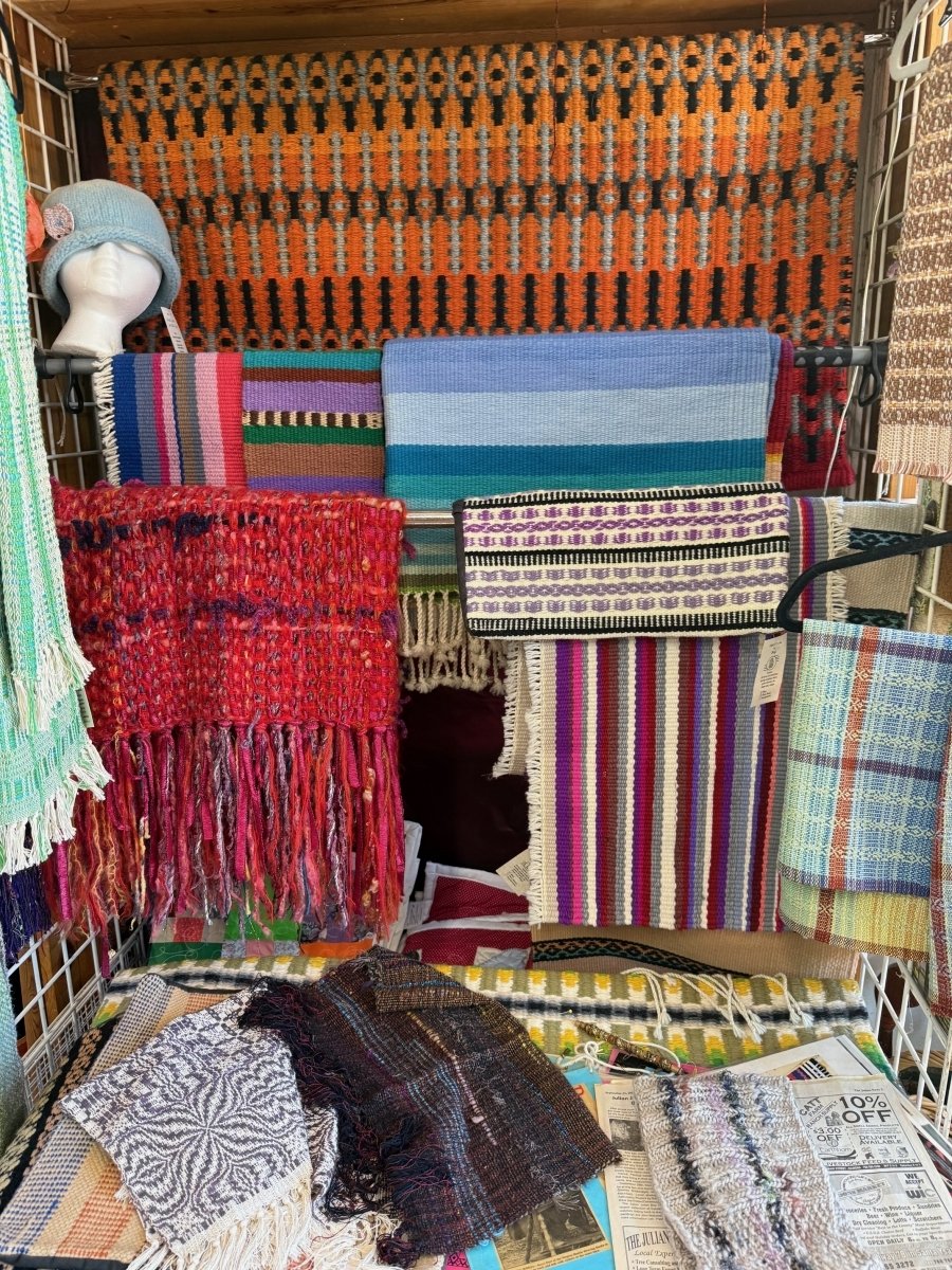 The shop offers a delightful variety of colorful, hand-woven clothing items such as shawls, wraps, scarves, and caps. You can purchase these items, or sign up for a class and learn how to make your own.