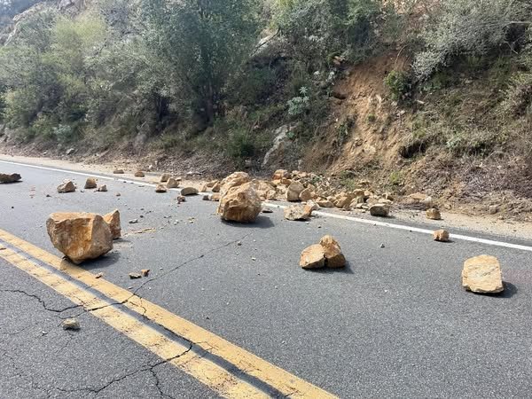 California Highway Patrol reports that boulders dislodged by the quake are blocking State Route 76 near State Route 79 in the Lake Henshaw area. See photo below right, via CalTrans. Mud and debris are also reported at the entry to Palomar State Park.