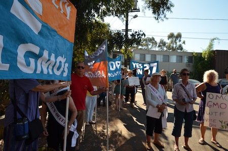September 24, 2012 (San Diego)—La Mesa resident Norrie Robbins,  PhD helped organize a San Diego rally yesterday in support of Proposition 37, a ballot measure that if passed will require labeling of genetically modified foods.
