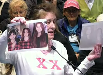 But Mary Davis (photo, right) sees the resolution as “standing up for law and order.” She insists that isn’t racist. While opponents spoke of “kids in cages” in detention camps, Davis spoke of “kids in coffins.” She held up a photo of three children whom she said were killed in Sacramento by an undocumented father after he was arrested for a violent offense, then released.