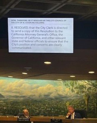 The revised resolution includes several amendments, including one proposed by Goble asking the U.S. Attorney General to indemnify El Cajon and defend its police officers against state challenges over immigration actions. “I don’t want this conflict to punish our police officers,” said Goble, who insisted that the resolution is for the “sole purpose of getting rid of serious and violent criminals and to protect the people of El Cajon.”