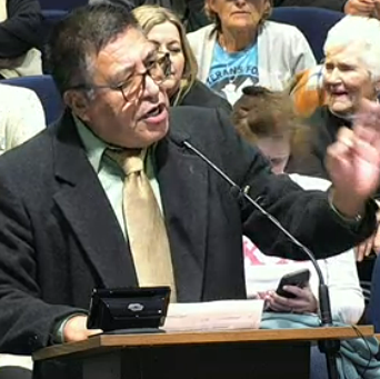 The final speaker, Julianne, told the Council that in 1931, “Mexicans were rounded up from hospitals, from cities, from their homes….they were summarily put in boxcars and trucked to Mexico….One of them was my grandfather. He was taken out of the hospital and sent to Mexico City; he was not from Mexico City…My grandmother despairingly went after him with my mother and my aunt; both were born here in the United States” and remained in Mexico until 1965.