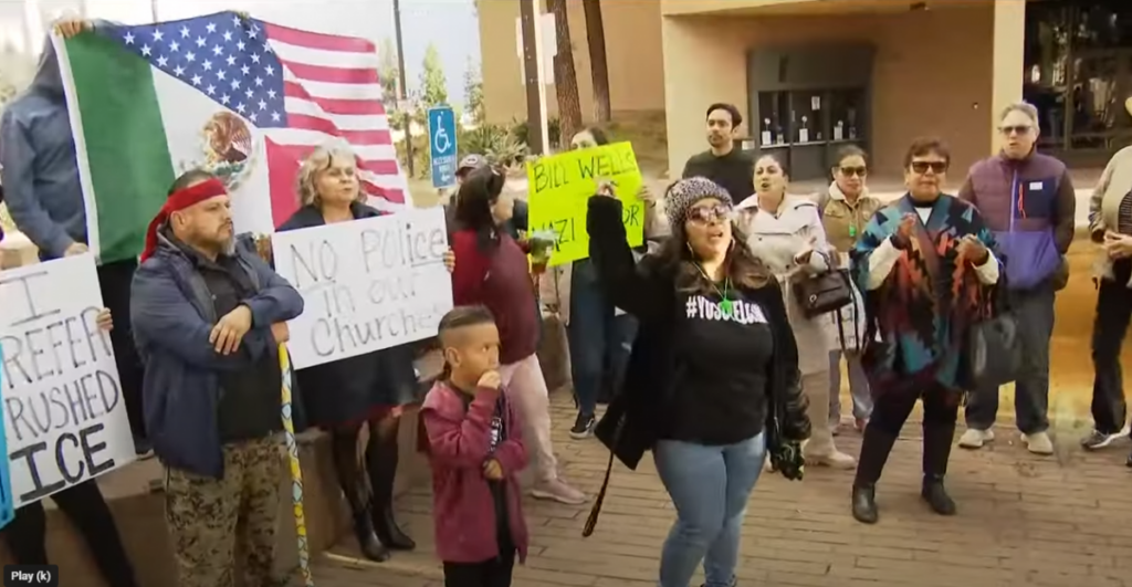 January 28, 2025 (El Cajon) – A crowd of about 75people opposed to mass deportations held a rally outside El Cajon’s City Hall yesterday to speak out against Mayor Bill Wells’ proposed resolution for the city to fully cooperate with federal immigration authorities. The City Council will hold a hearing today at 3 p.m. on the controversial measure.