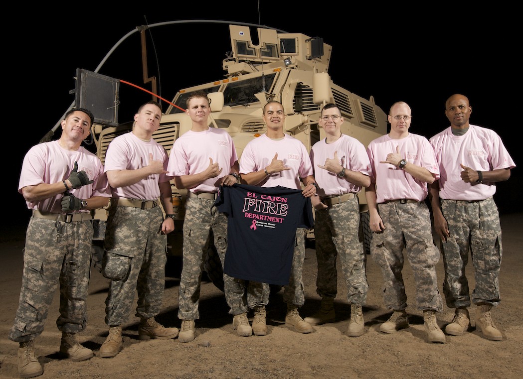 According to Captain Rickards, “Members of the El Cajon Fire Department are proud to wear their department logos with the pink lettering, showing their support in the fight against breast cancer. Sharing that pride with our troops is an honor.”