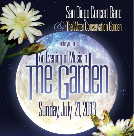 July 19, 2013 (El Cajon) – The San Diego Concert Band presents “An Evening of Music in The Garden”, along with The Water Conservation Garden for an inaugural joint fundraiser on July 25 at 5 p.m. at 12122 Cuyamaca College Drive West, El Cajon. The evening’s outdoor program depicts our American heritage through music that includes light classics, historical themes and modern compositions for concert band. The concert will be held in The Garden’s outdoor amphitheater.